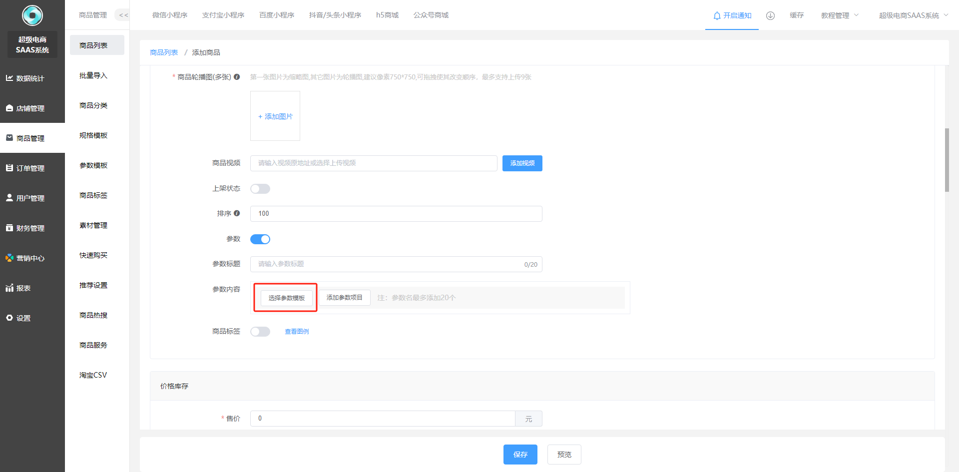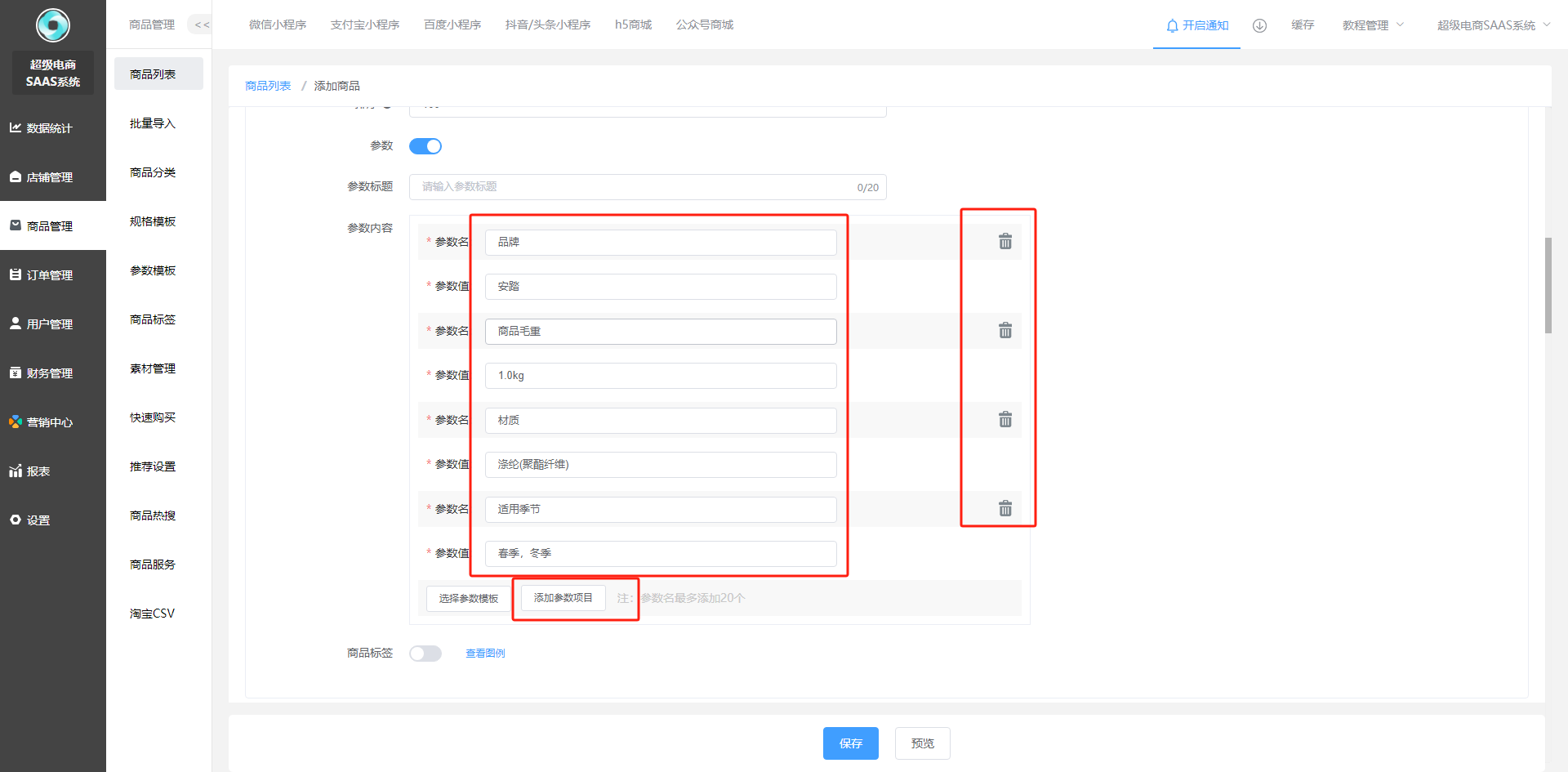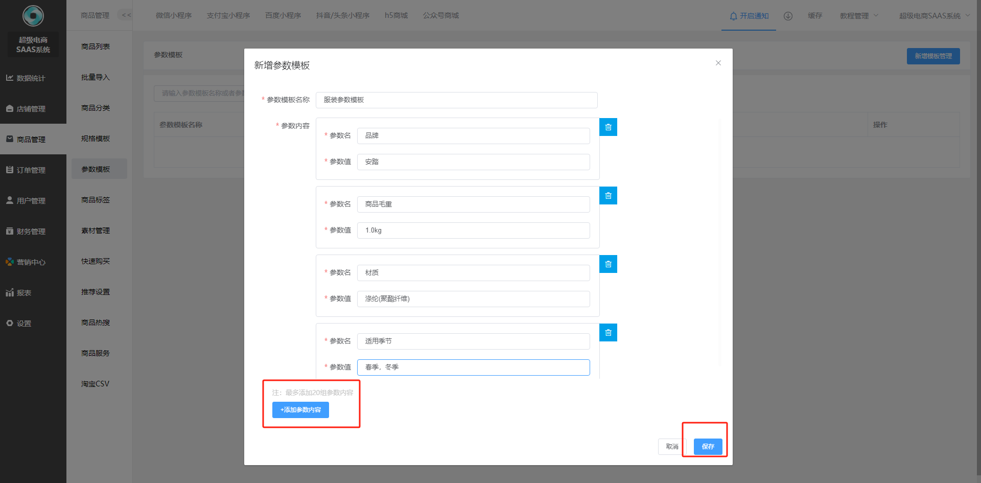 商品参数模板添加和使用