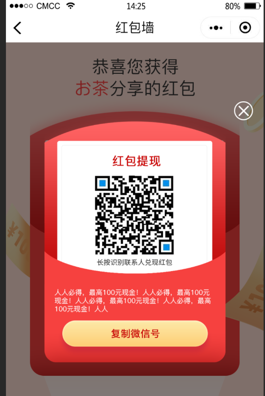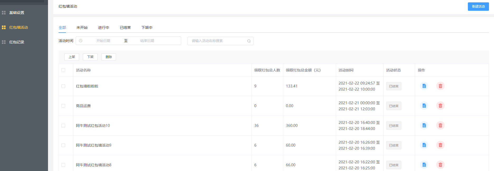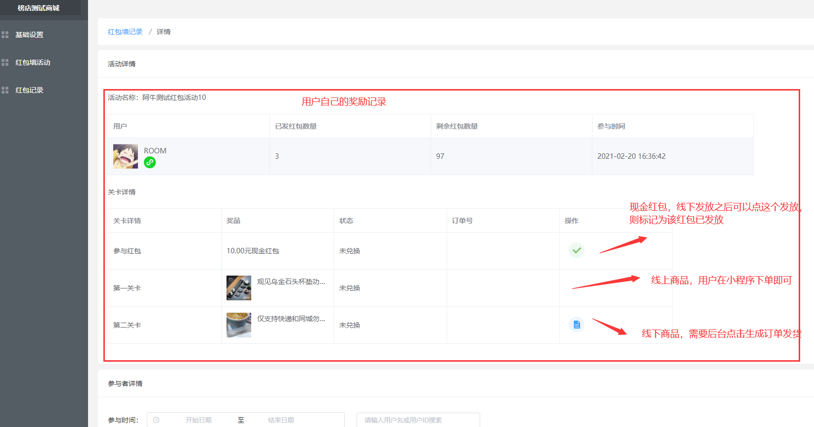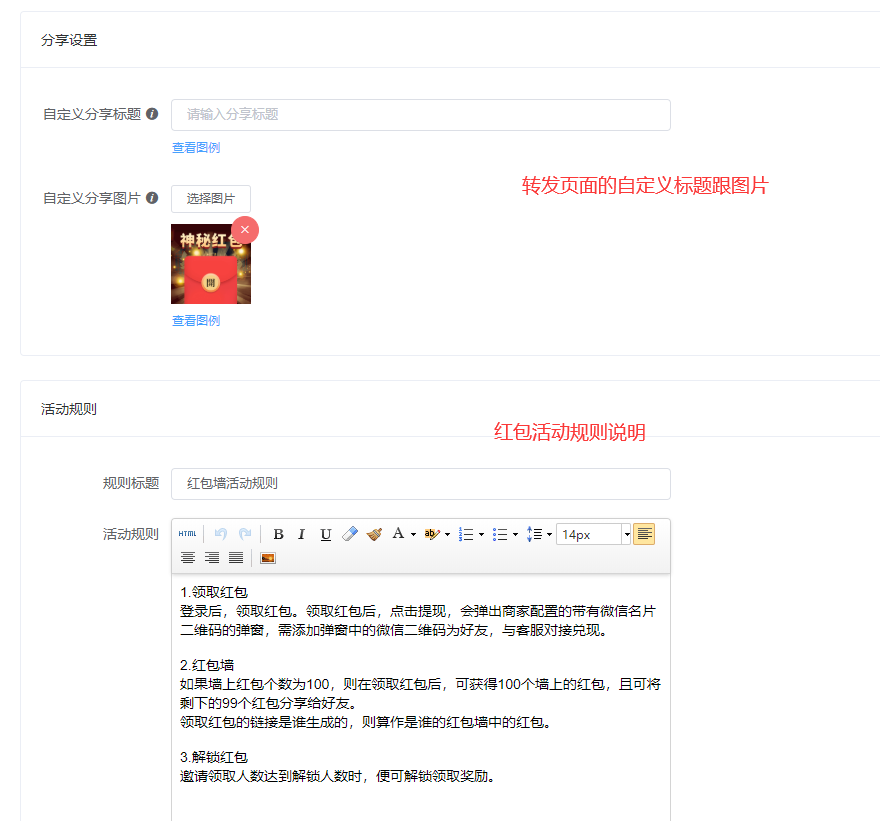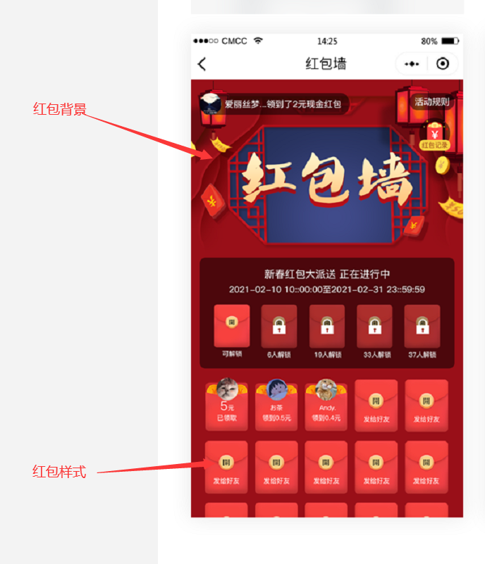 需要商城版本4.4.14及以上,需要小程序重新发布并且购买安装了红包墙插件才能使用