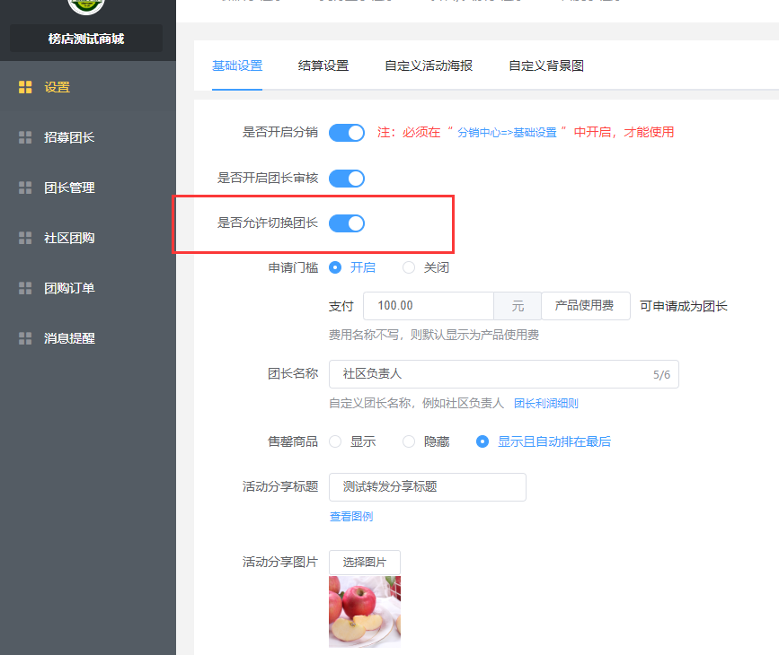 后台设置开关,控制是否允许团员切换团长