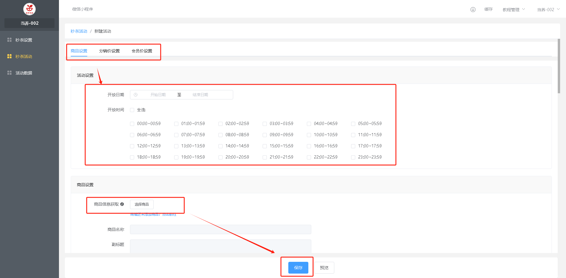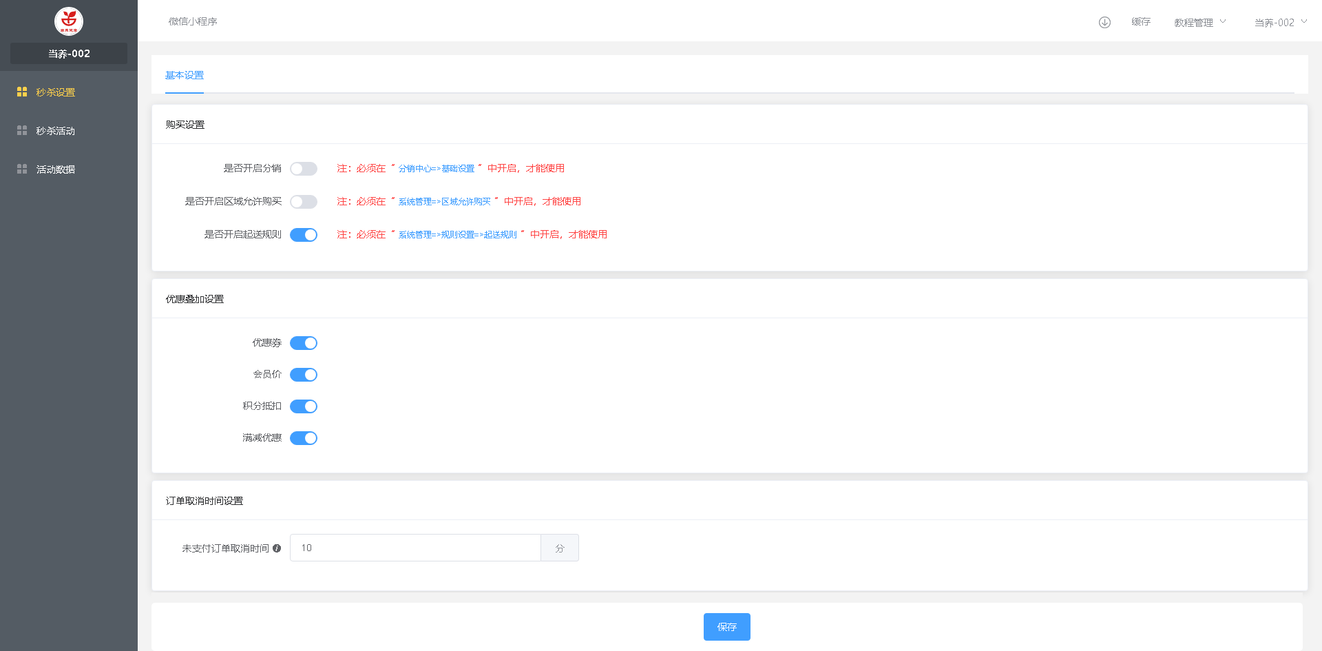 首页 LINK PAY收银系统SAAS版-使用教程 营销中心 整点秒杀