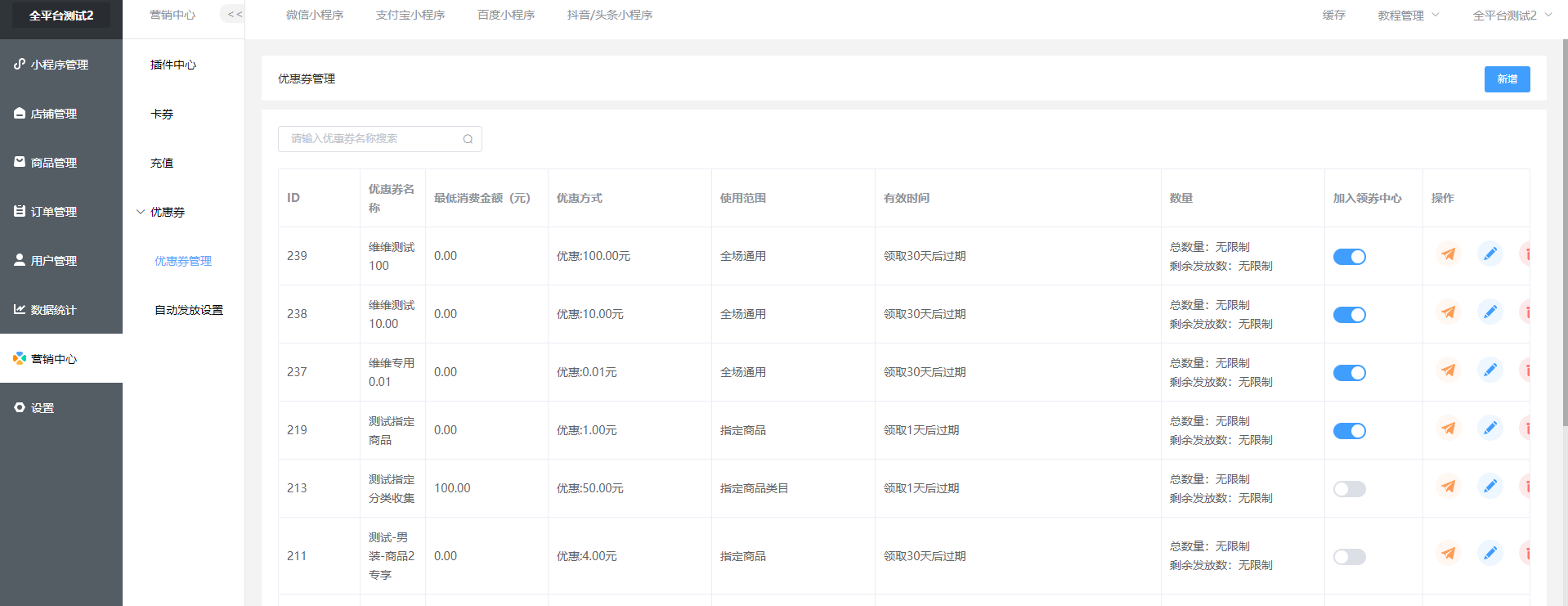 勾选则加入领券中心,在小程序端-领券中心显示(若,小程序端没有显示是因为没有到“小程序管理”—>“首页布局”—>“添加领券中心”)
