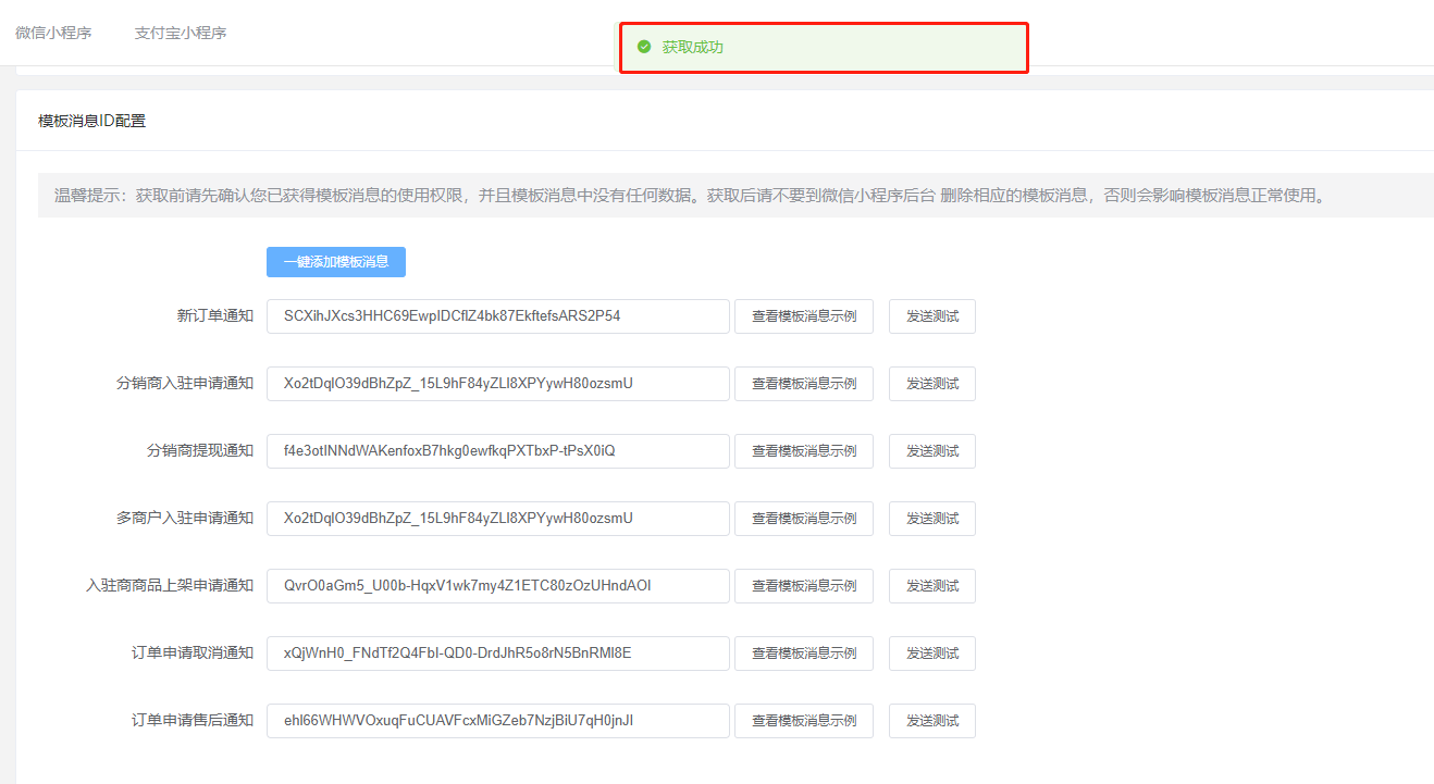 可一键添加模板消息,(也可以按照教程说明填写模板的内容)