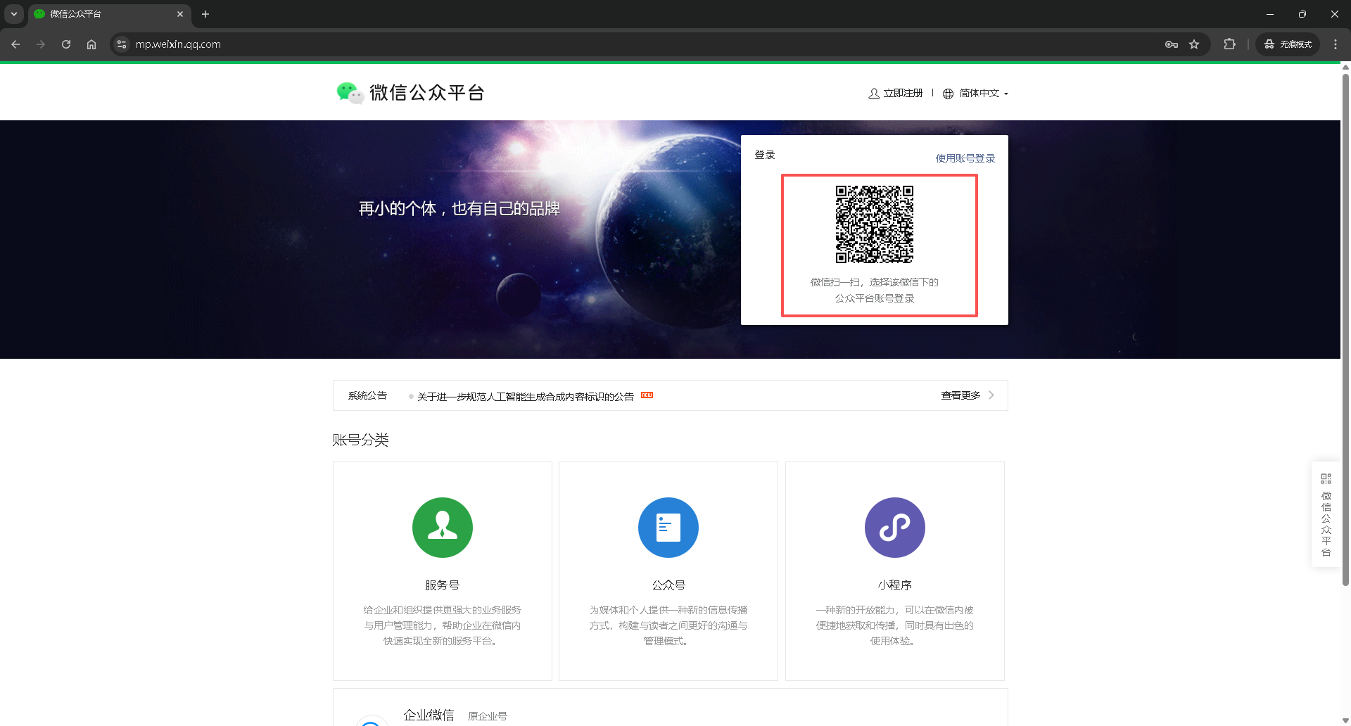 使用管理员的微信扫描登录公众号 或者 小程序
